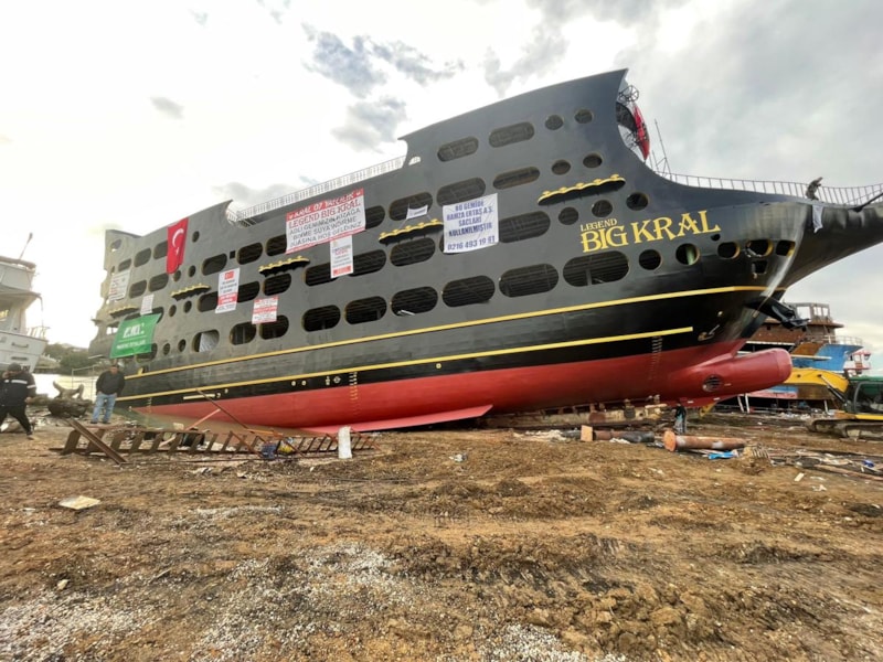Antalya’nın Manavgat ilçesindeki tersanede yapımına başlanan ‘Big Kral’ isimli tur teknesi, 15 ayda tamamlandı.
