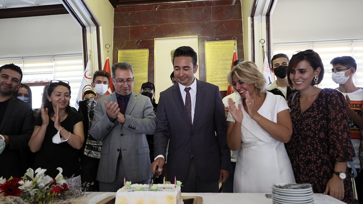 Arslan'ın başarısını meslektaşları ve öğrencileri okulda pasta keserek kutladı.