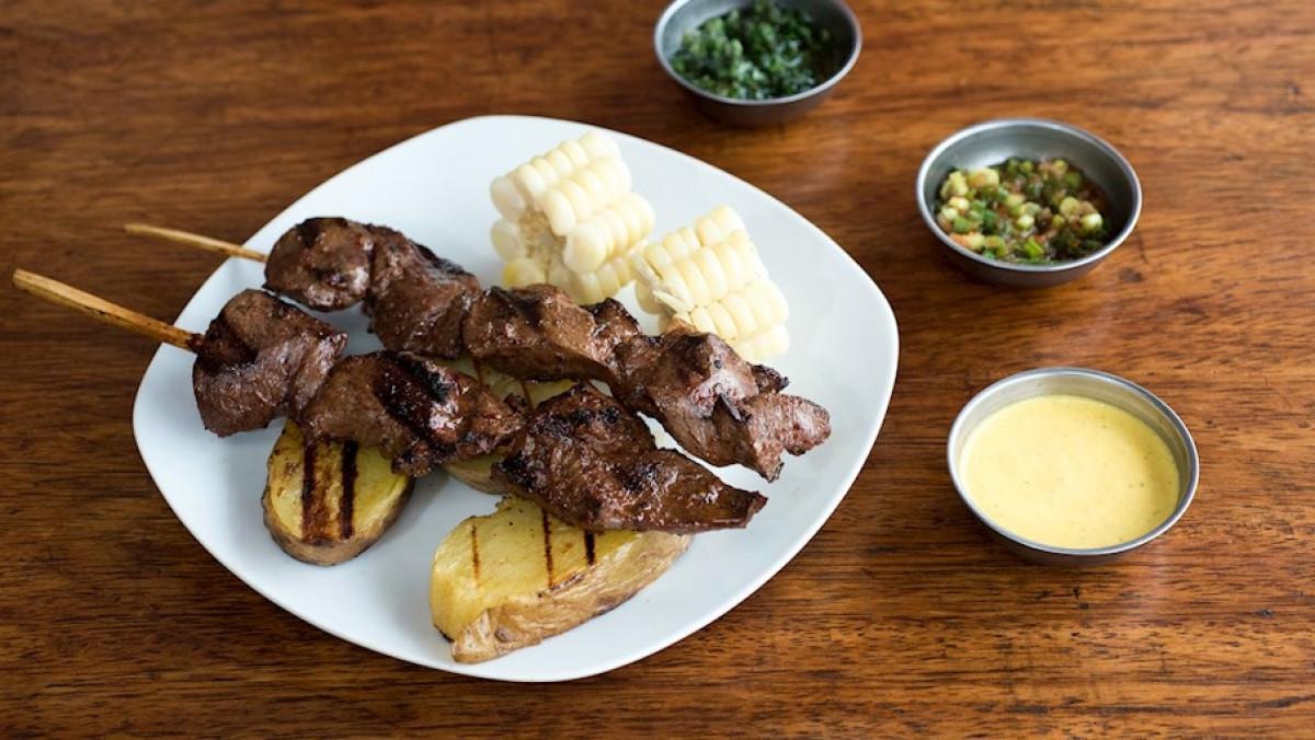 Peru’ya özgü bu sokak lezzeti, dana yüreğinin sarımsak, kırmızı şarap sirkesi, aji panca biberi ve baharatlarla marine edilip şişe geçirilerek ızgarada pişirilmesiyle hazırlanır. Geleneksel ve cesur bir tat sunar.