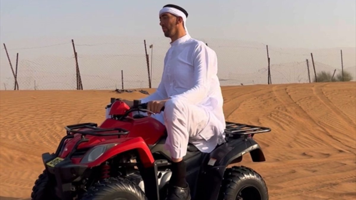 Kösen, Dubai'de ATV ile çölde safari yaptı, gezi boyunca hayranlarıyla hatıra fotoğrafı çektirdi.