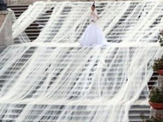 İtalyan modacı Gianni Molaro dünyanın en uzun duvağını tasarladı.