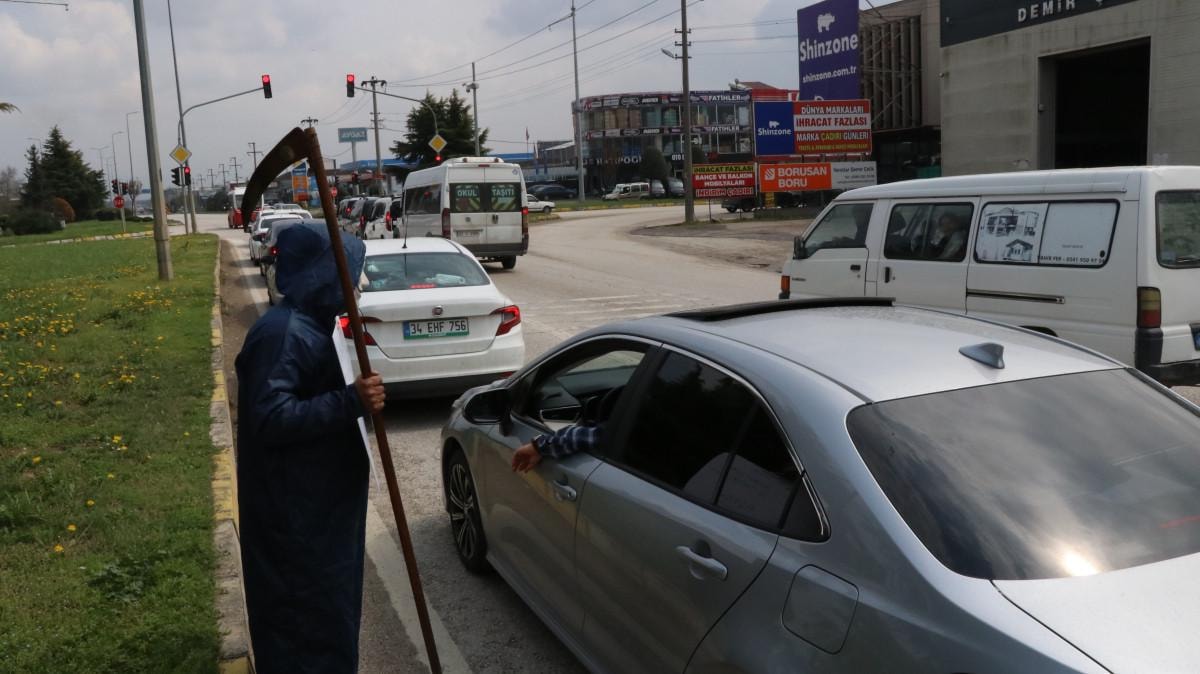 Bayram tatillerinde trafik kazalarındaki ölümlere dikkat çekmek isteyen amatör tiyatrocu Resul Gür de D-100 kara yolunda V For Vendetta karakterinin maskesini takıp, eline de tırpan alarak farkındalık oluşturmaya çalıştı.