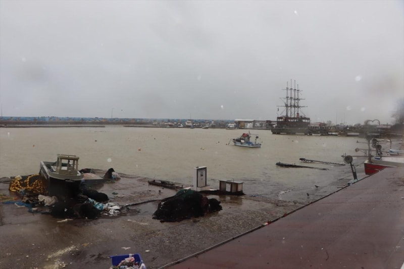 Karadeniz'e kıyısı bulunan ilçede etkili olan kuvvetli rüzgar sonucu dalga boyunun 3 metreyi aşması nedeniyle balıkçılar teknelerini güvenli bölgelere aldı.