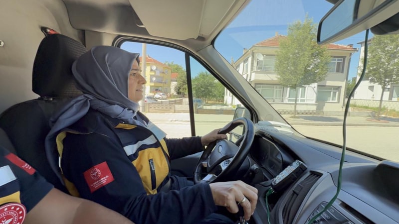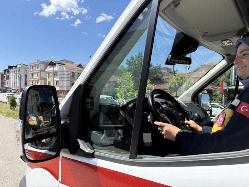 Eğitimi birincilikle tamamlayan Semra Karagöz, direksiyon başına geçerek hastalara ve yaralılara en hızlı şekilde ulaşmak için görev yapıyor.