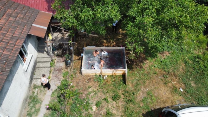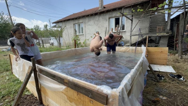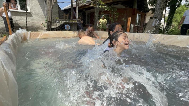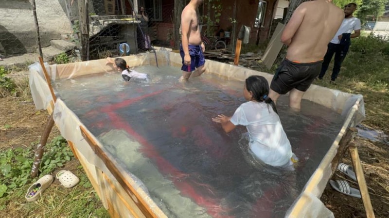 Sıcaklıkların mevsim normallerinin üzerinde seyretmesinin ardından, serinlemek isteyen mahalle sakinleri bahçeye bin 500 liraya 4 kişilik havuz yaptı.