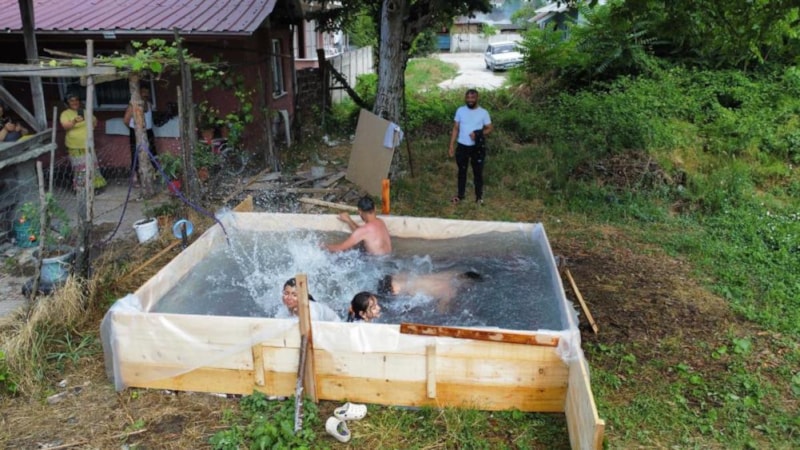 Yaptıkları havuzu ise en çok çocuklar çok sevdi.