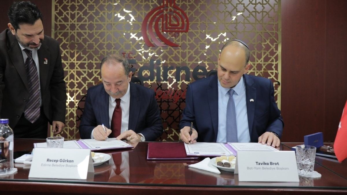 CHP'li Edirne Belediye Başkanı Recep Gürkan, İsrailli Bat-Yam Belediye Başkanı Tzvika Brot ve beraberindeki heyetle Atatürk Kültür Merkezi'nde bir araya geldi.