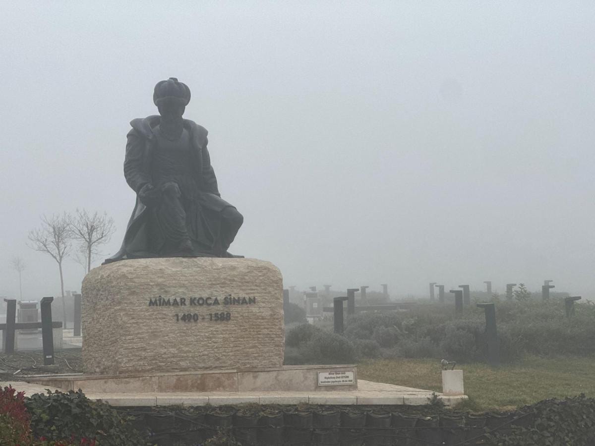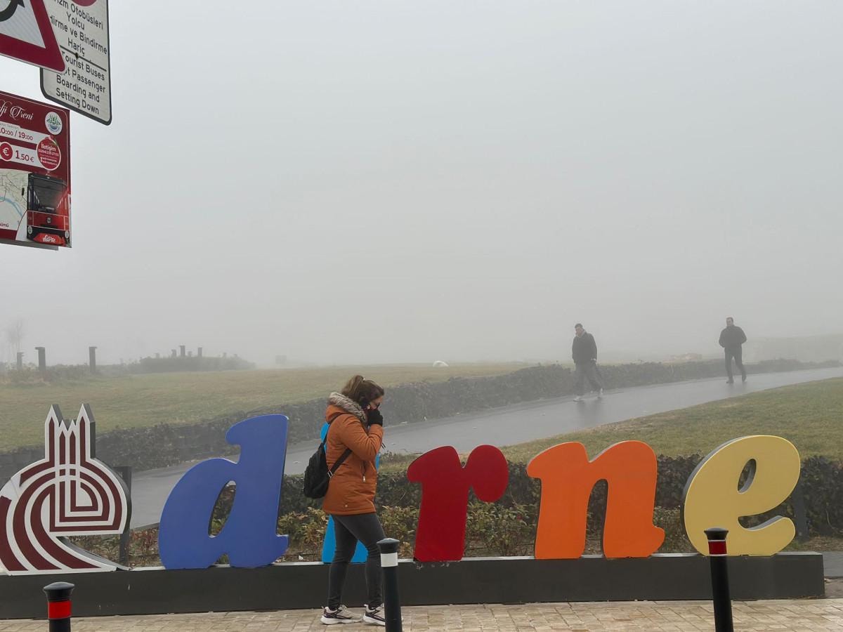Görüş mesafesinin düştüğü kentte, Selimiye Camisi başta olmak üzere tarihi yapılar da sisle kaplandı.