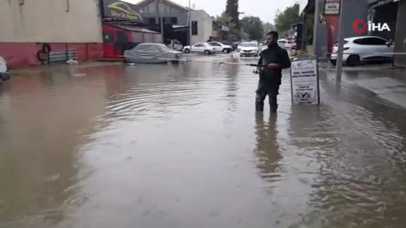 Sağanak nedeniyle bazı cadde ve sokaklar suyla doldu, bazı araçlar yolda mahsur kaldı.