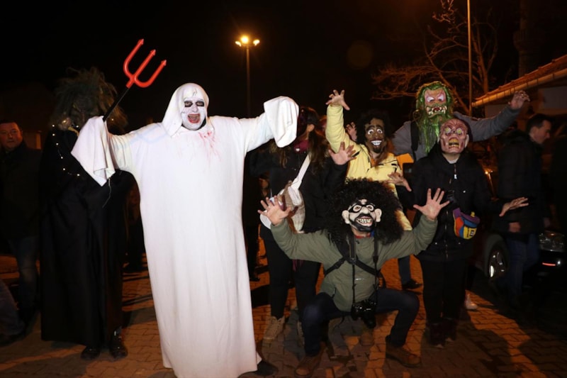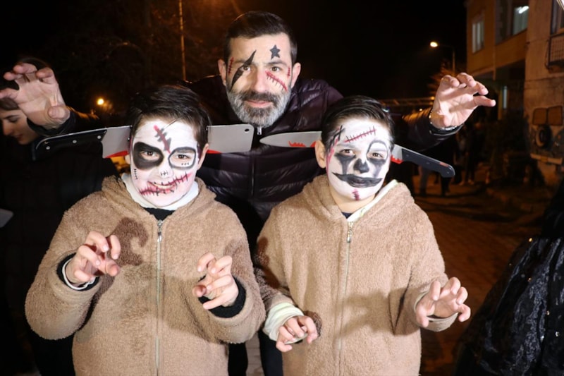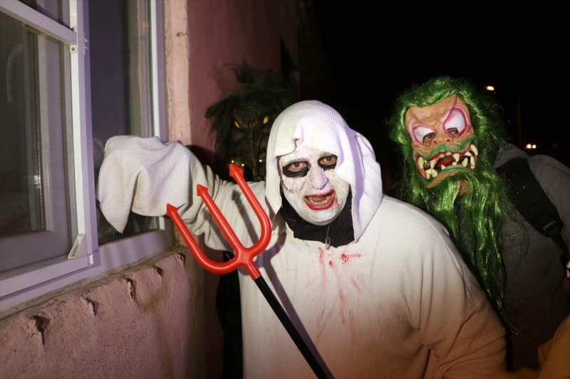 Edirne'de Balkan geleneği olan "Bocuk Gecesi" etkinliğinde katılımcılar, yüzlerine korku ve dehşet uyandıracak makyaj yaptırdı.