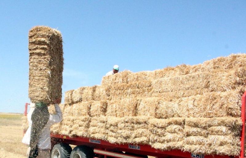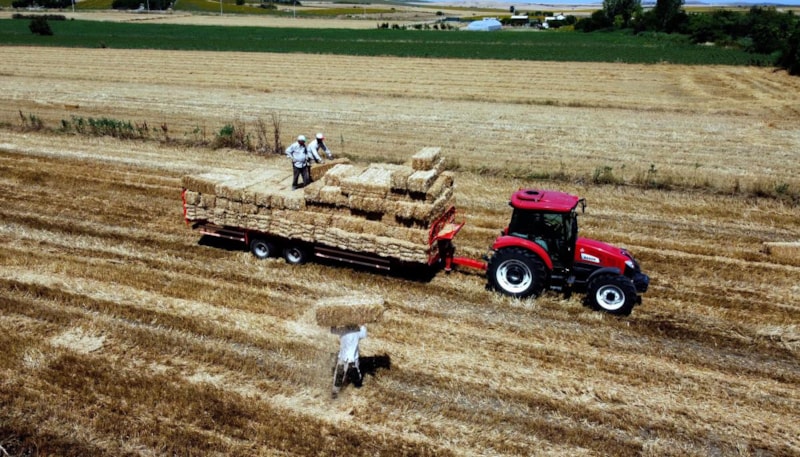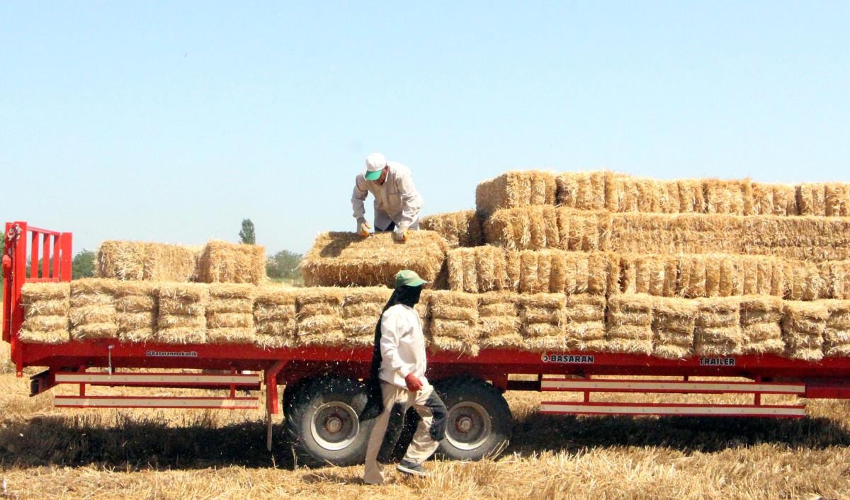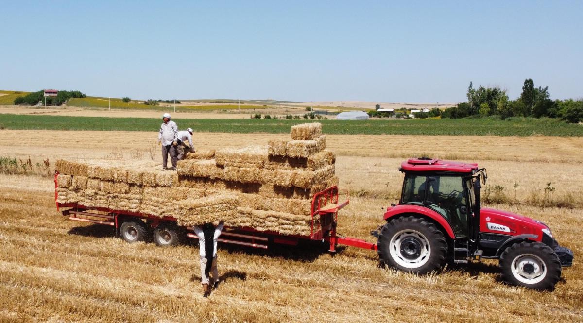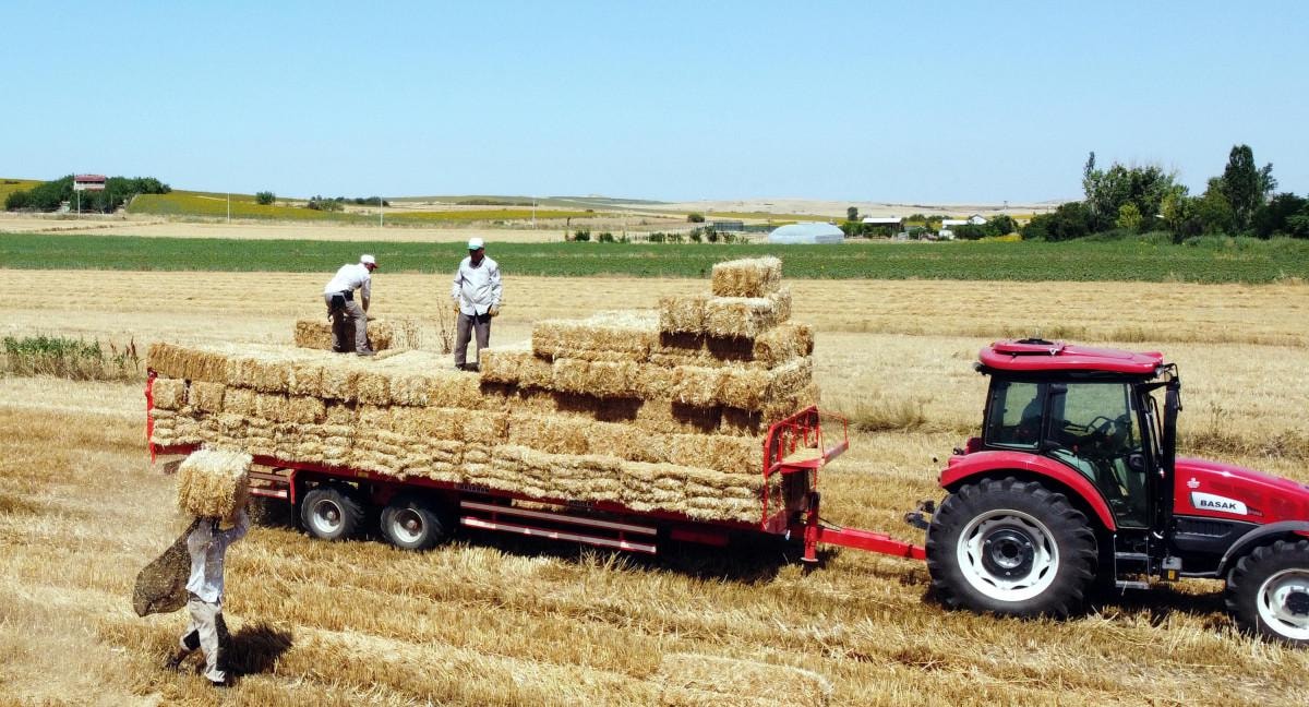 Buğdaylardan geriye kalan saplar ise tarlalarda, traktörlerde bağlı makinelerle 25 kiloluk balya haline dönüştürülüyor.