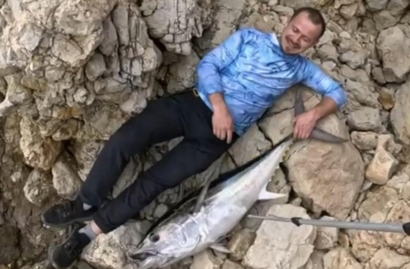 Orkinos kıyıya geldi ve kıyı rekorumu 30 kilo ağırlığında ve 130 santimetre uzunluğunda orkinosla kırdım. Peşinde olan herkese rastgele.