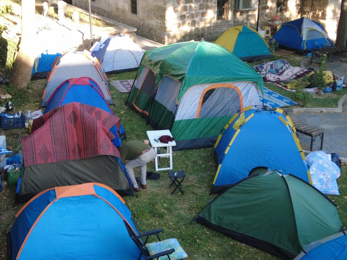 Başta cami bahçeleri olmak üzere kent merkezinde bulunan meydan ve parklar adeta kamp alanına dönüştü.