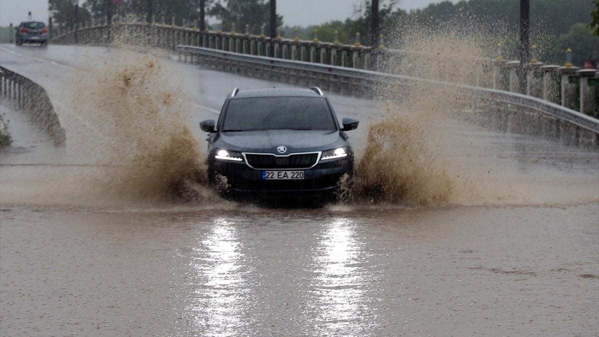 Edirne'de aniden başlayan sağanak yaşamı olumsuz etkiliyor. Aralıklarla şiddetini artıran sağanak nedeniyle cadde ve sokaklarda su birikintileri oluştu.