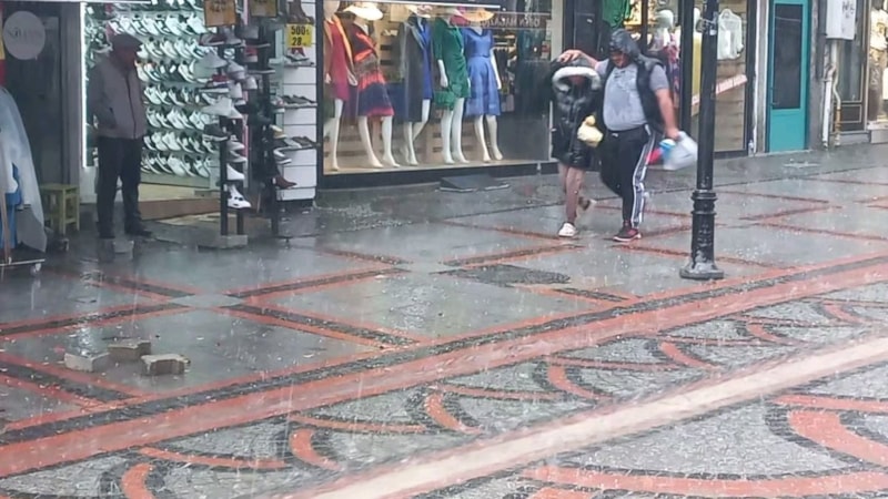 Edirne'de arefe günü etkili olan sağanak yağmur ve fırtına beraberinde dolu yağışını getirdi.