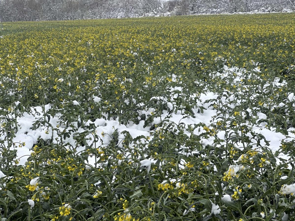 Ancak yeni çıkan ayçiçeklerinde eksi 3 derecenin altına düşen sıcaklıklar ayçiçeğini olumsuz etkileyecektir. Kanolalarda çiçeklerin üzerinde kar birikintileri oluşmaya başladı. Kanolada ilk defa yaşadığımız bir durum. Kanolaları dikkatlice izliyoruz. Hiç kanolanın üzerine kar yağdığı görülmemişti. Tabii burada kanola boyu önemli. Çok boyluysa dezavantajlı olabilir. Boyu kısa olduğunda alttan yeni filizler verebilir." diye konuştu.