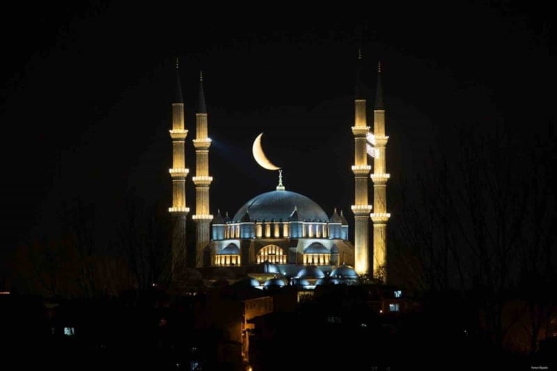 Fotoğraf sanatçısı Turhan Ülgüder tarafından çekilen karelerde, gökyüzünde yükselen hilalin, kentin simgesi olan Selimiye Camii’nin silüetiyle adeta bütünleştiği görülüyor.