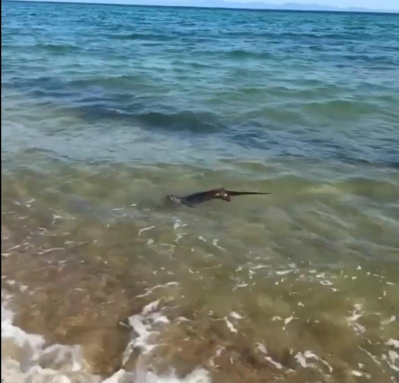 Saros Körfezi kıyısındaki Enez’in Gülçavuş köyü sahilinde denize girmek isteyen tatilciler, kıyıda yüzmekte olan su samurunu fark etti.