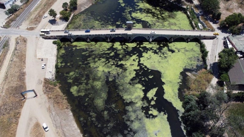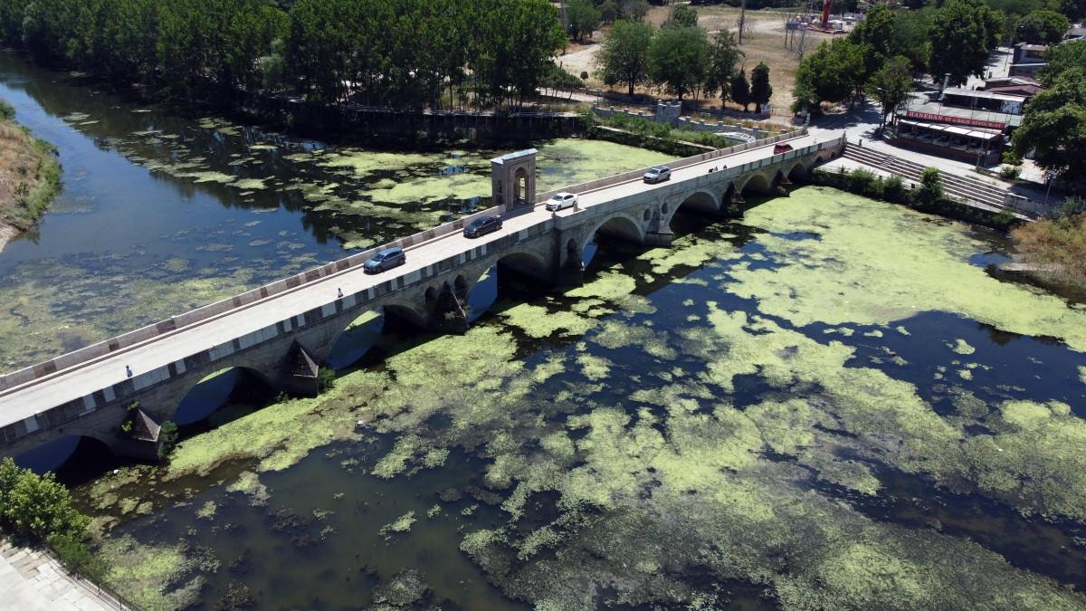 Edirne'nin önemli su kaynaklarından Tunca Nehri'nde Devlet Su İşleri (DSİ) verilerine göre geçen aya göre su seviyesinin yarı yarıya düşmesiyle yüzeyi yosunla kaplanırken, bırakılan evsel atıklarla nehir adeta çöplük haline geldi.