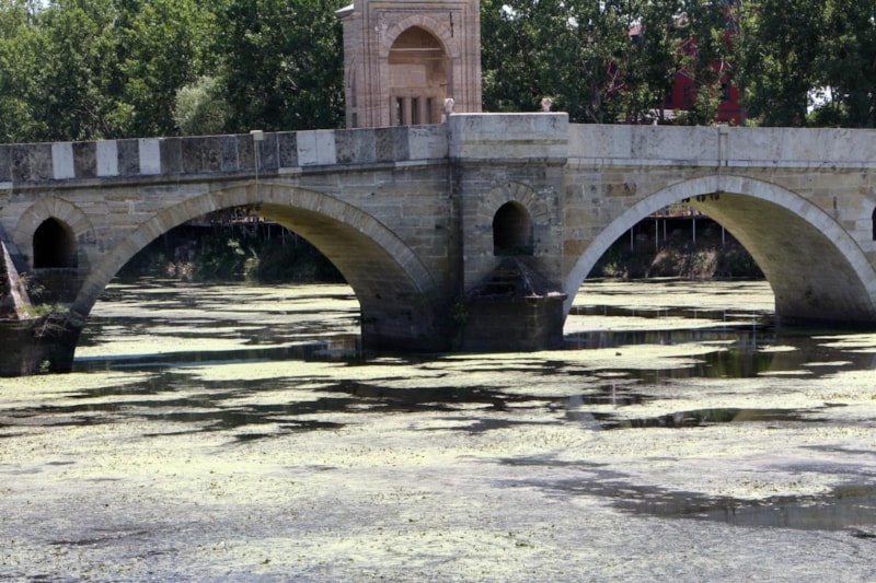 Yağışların azalması ve hava sıcaklıklarının mevsim normallerinin üzerinde seyretmesi Tunca Nehri'nin su seviyesinin bir ayda yarı yarıya düşmesi sebep oldu.