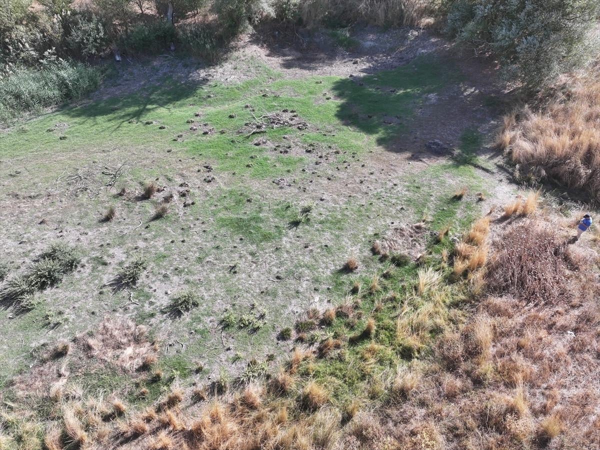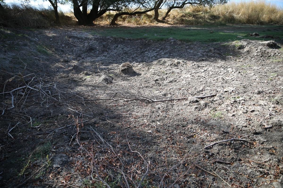 Kısa süreli sağanak geçişlerinin fayda sağlamaması ve göleti besleyen su kaynaklarının da kurumasıyla göletin suyu tamamen çekildi.
