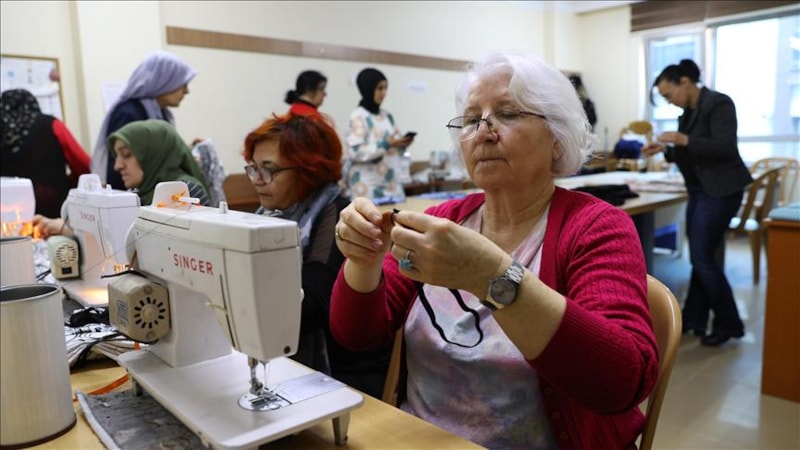 Van'da Tuşba Halk Eğitim Merkezi Müdürlüğündeki kadın kursiyerler, "asrın felaketi" olarak nitelenen depremlerden etkilenenler için eşofman takımı, pijama, atkı ve bere dikti.