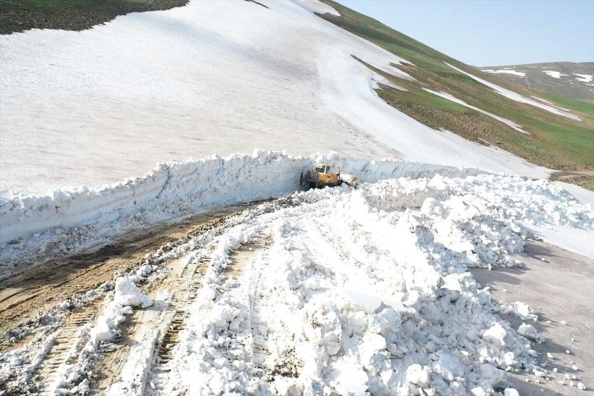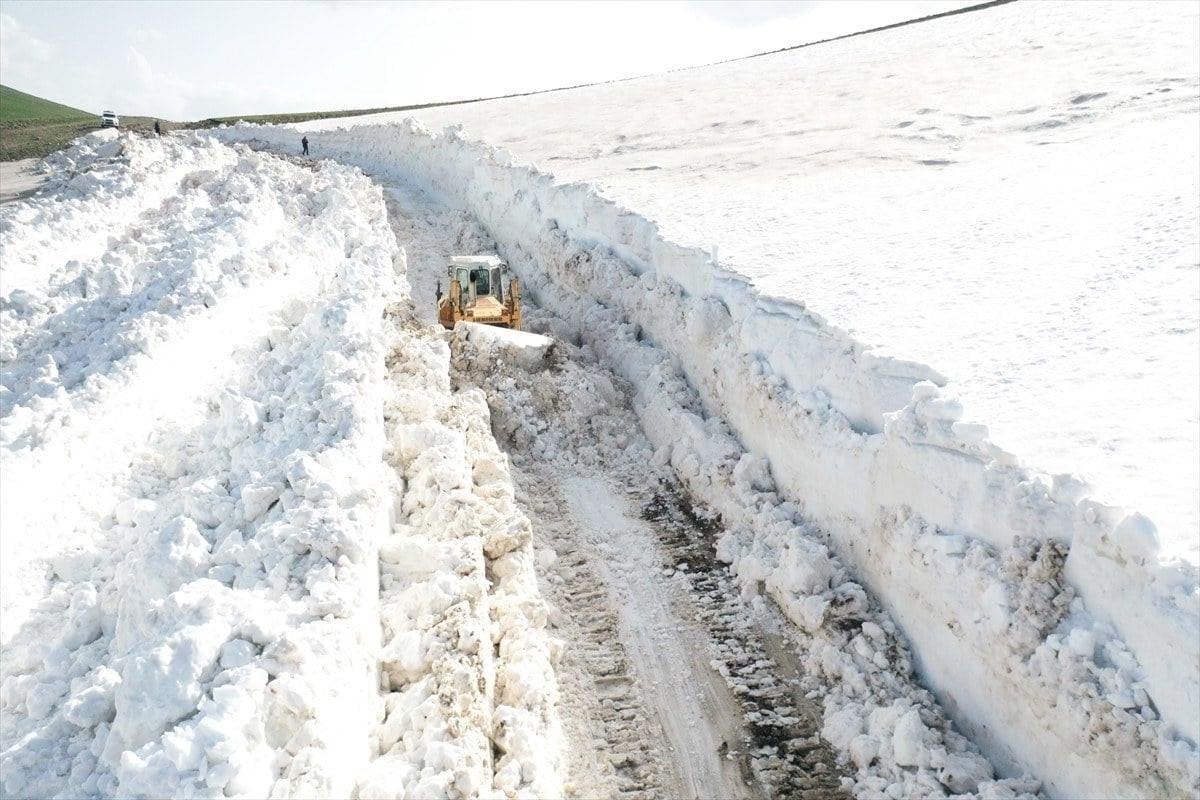 Ekipler kar kalınlığının yer yer dozerin boyunu aştığı yolda çalışmalarını sürdürerek ilçeye bağlı son yerleşim yeri Adakent köyüne ulaşmak için karla mücadele çalışmasını nisan ayının sonlarında da devam ettiriyor.