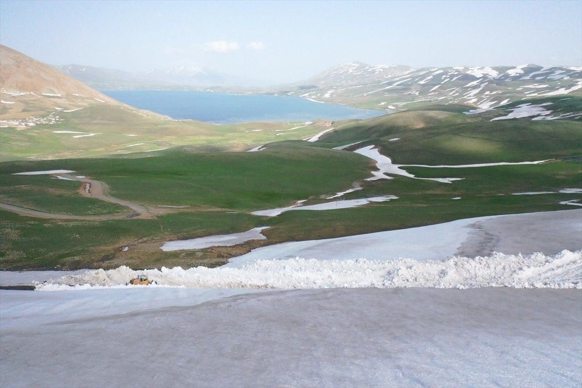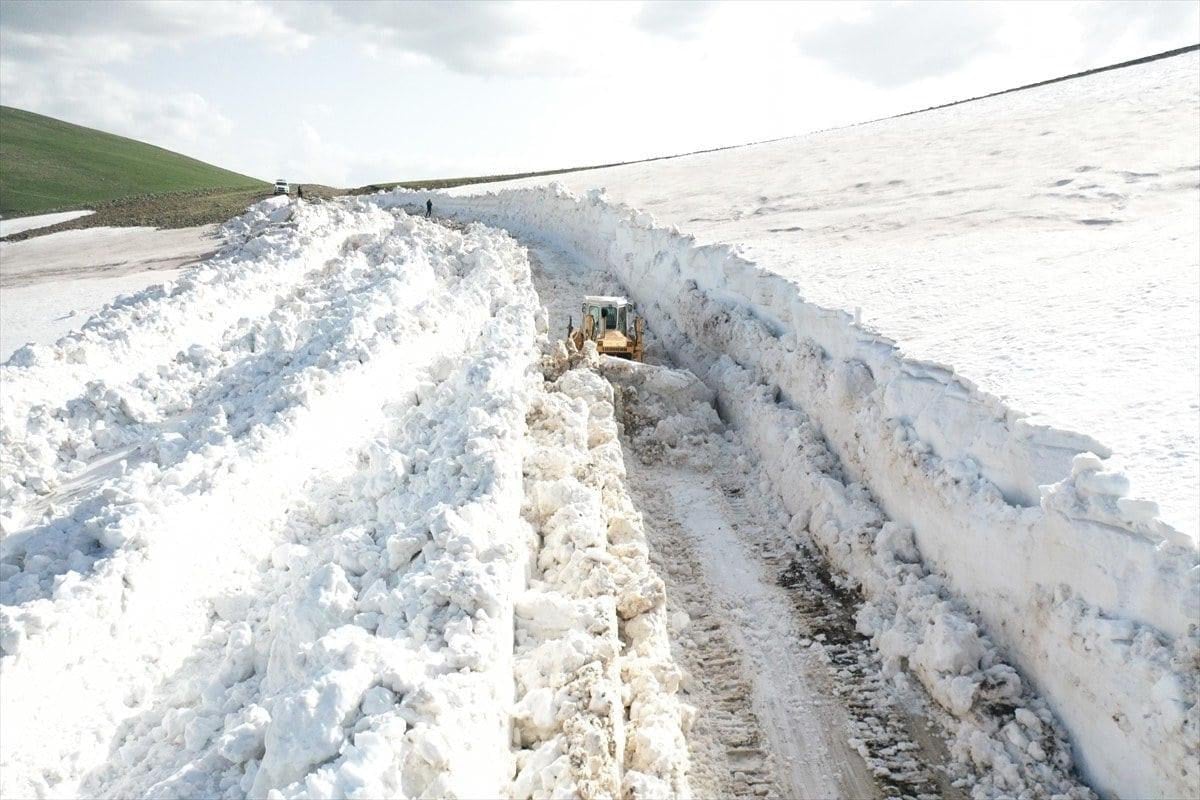Ağrı'da İl Özel İdaresi ekipleri, yaklaşık 35 kilometrelik Balık Gölü yolunda yer yer 5-6 metreyi bulan kar kütleleriyle mücadele ediyor.