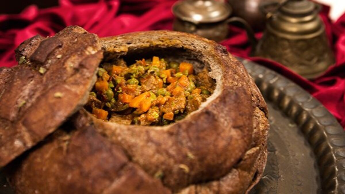 1 adet tam buğday ekmeği (yuvarlak) 400 gram dana kuşbaşı eti 3 yemek kaşığı sıvı yağ 1 adet yemeklik doğranmış soğan 2 adet küp doğranmış havuç 1 su bardağı bezelye 1 çay kaşığı tuz 1 çay kaşığı rezene 1 çay kaşığı anason 2 su bardağı su 2 adet doğranmış domatesÜzeri İçin: