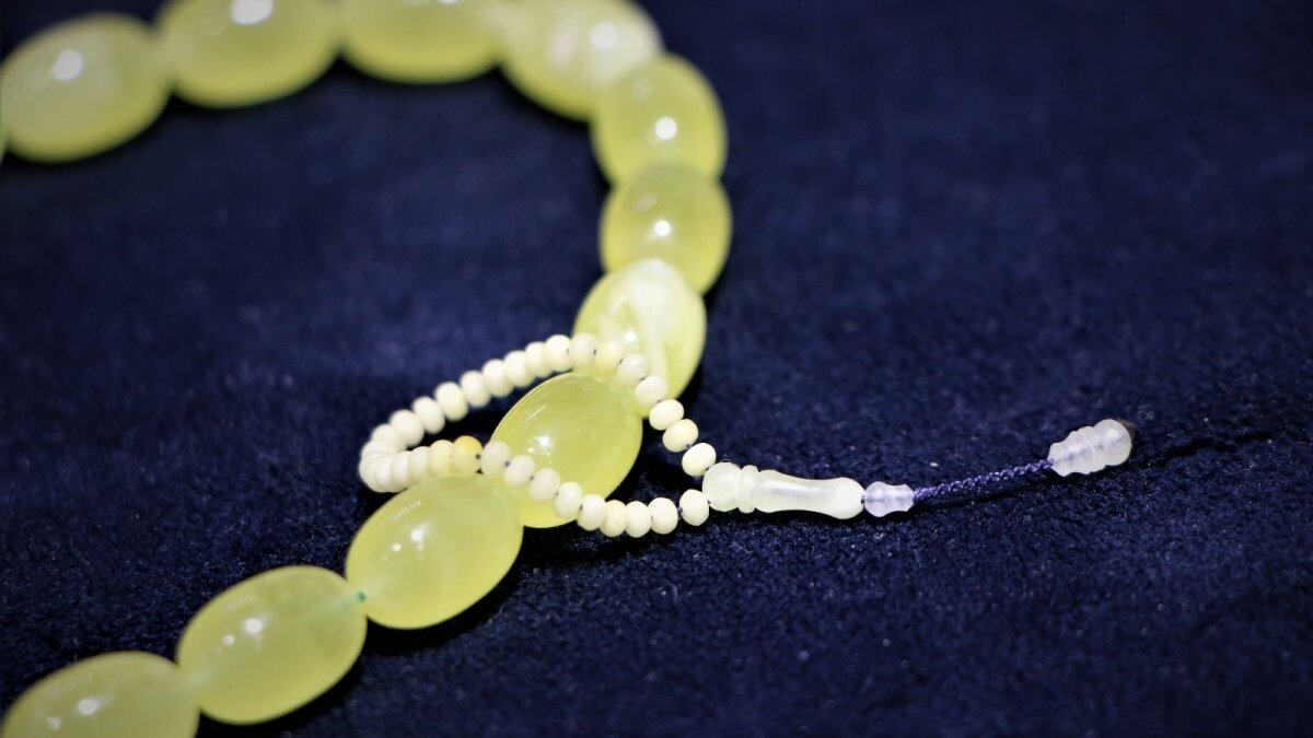 Tanyıldızı, bu sefer çam reçinası olan 50 milyon yıllık fosil damla kehribarı işleyerek tane ebatları 1.6 milimetre olan bir tespih üretti.