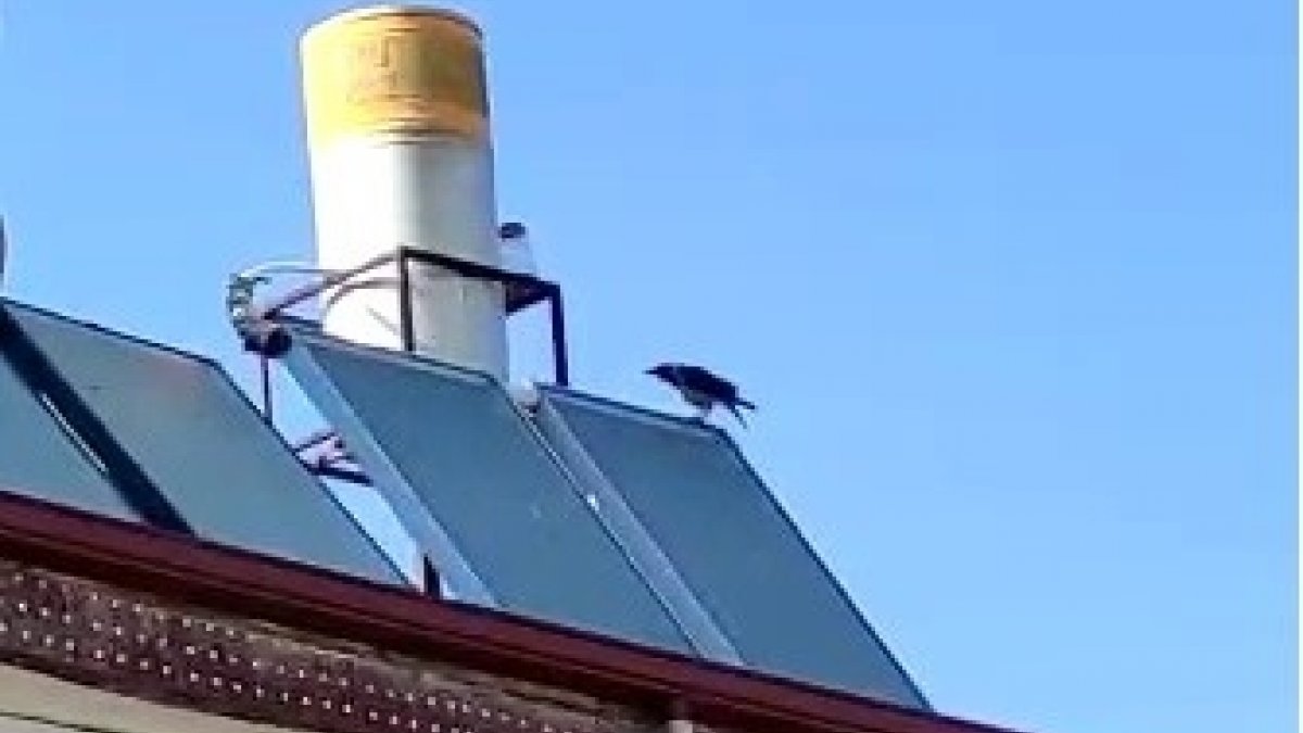Duyanları hayrete düşüren karganın görüntüleri, vatandaşın cep telefonu kamerasına yansıdı.