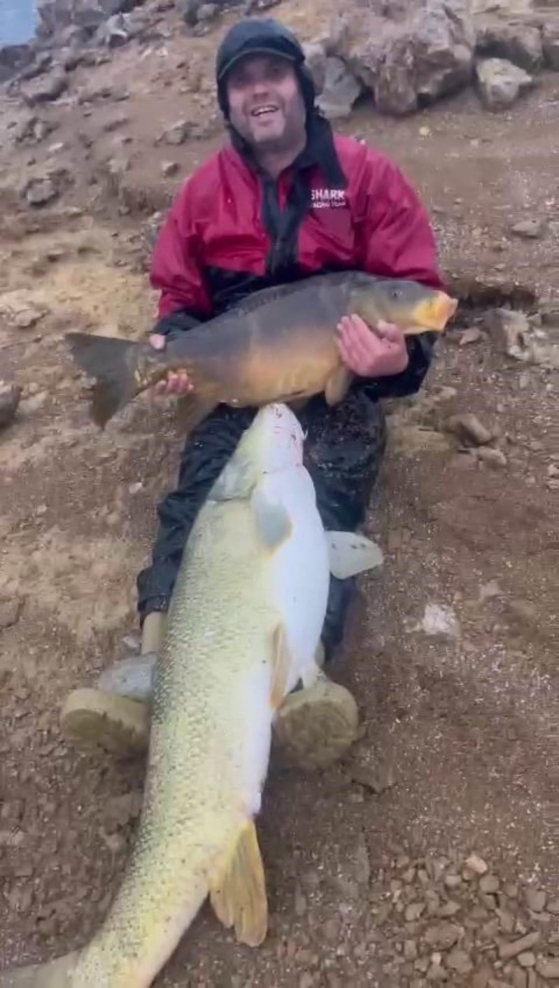 Bu kez de Elazığ’da bur vatandan 15 ve 30 kiloluk iki balığı peş peşe tuttu.