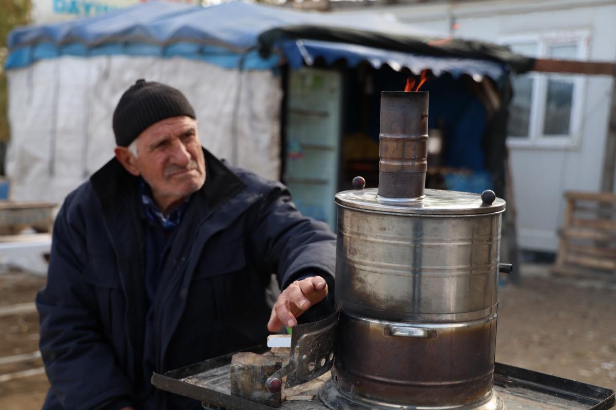 Çay satarak geçimimi sağlıyorum. Kurban Bayramı'nın arifesinde mekanım yandı ve kül oldu. 3 sene önce de eşimi kaybettim. Burada çay satıyorum ama içen de yok. Gelen gidiyor. Ekmek parasını kazanamıyorum. Konteyner için 3 ay uğraştım ve muhtarın vasıtası ile aldık. Bana konteyneri 3 aylığına verdiler. Alırken kağıt imzalattılar ve 3 ay sonra geri alacağız dediler. Müdürüm, 3 ay sonra kışa geliyor, ben kışın ne yapacağım dedim. Sonra 6 ay olsun dediler. Onun da 3 ayı geçti kaldı 3 kaldı. Ben 3 ay sonra ne yapacağım nereye gideceğim ve nerede kalacağım. Suyum şu an kesik durumda. Elektrikten bana 20 bin lira borç çıkarmışlar. Konteynerde elektrik yakıyorum ve ödeyemiyorum. Yakmayınca da soğuktur, geçinemiyorum. Ben bu sene burada ölürüm.