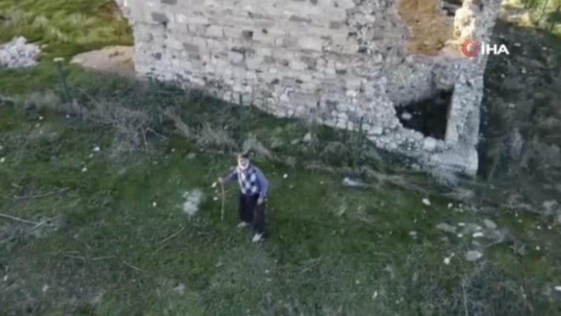 Çekim sırasında, atıl durumda bulunan bir tarihi eserin yanında yaşlı bir amca kameraya yansıdı.
