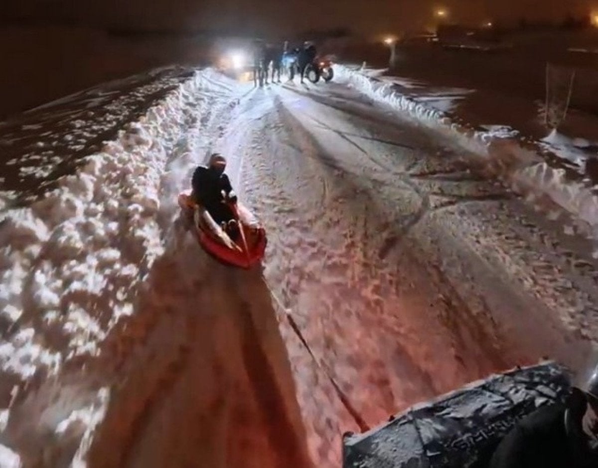 - Elazığ’da bir grup, şişme botu ATV’ye bağlayarak kar eğlencesi düzenledi.