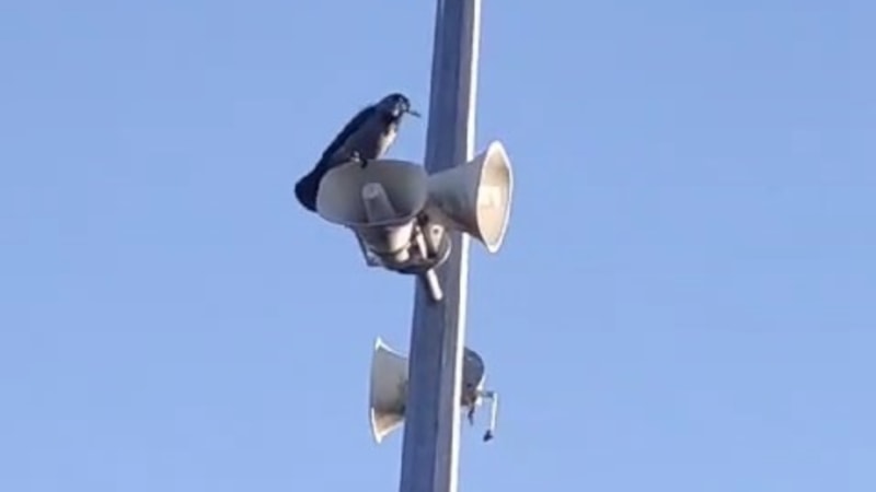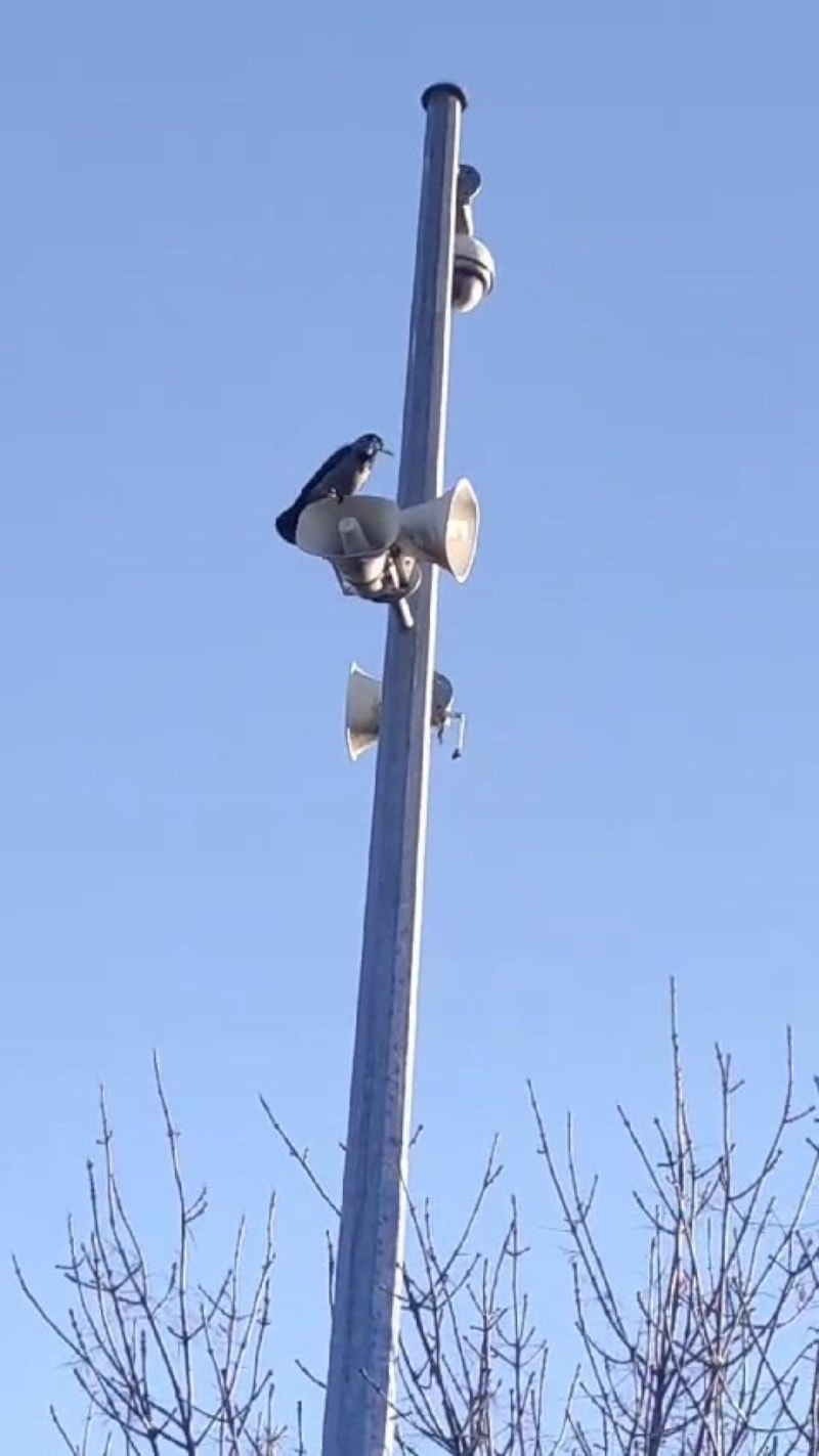 Bir direğin üzerine konarak 'Allah, Allah' diye bağıran karga, dinleyenleri hayretler içinde bıraktı.