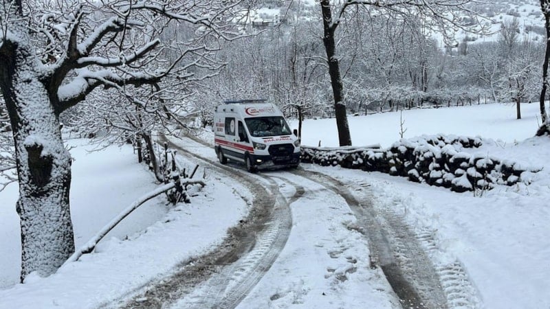 Bölgeye giden ekipler, kar nedeniyle yolun kapalı olduğunu görünce İl Özel İdaresi'ne haber verdi. Ekiplerin çalışması ile yol açılırken, hasta ambulans hastaneye kaldırıldı.
