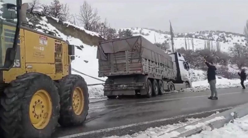 Diğer yandan Sivrice ilçesi Gözeli kara yolunda yoğun kar yağışı ve buzlanma nedeniyle kayarak yoldan çıkan Tır, İl Özel İdaresi ekiplerin çalışmasıyla kurtarıldı.