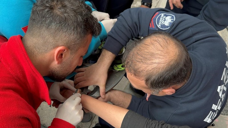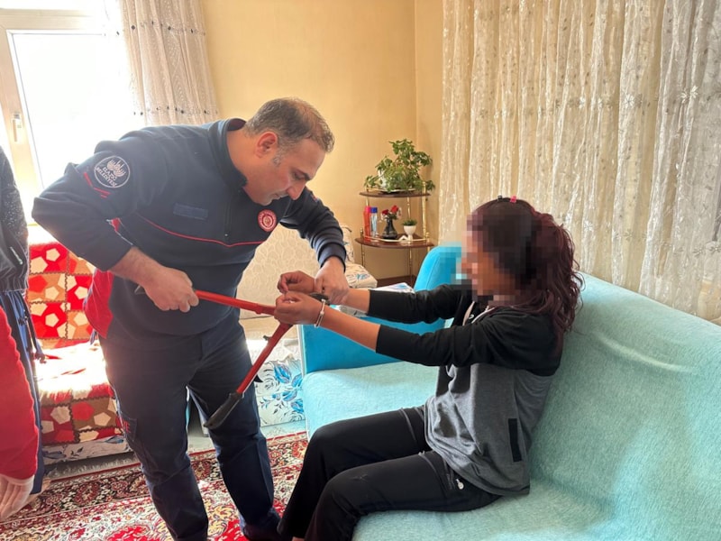 Çocuk, anahtarı olmayan kelepçeyi çıkaramayınca ailesine haber verdi. Uzun süre uğraşan aile, başarılı olamayınca 112 Acil Çağrı Merkezi'ni arayarak yardım istedi.