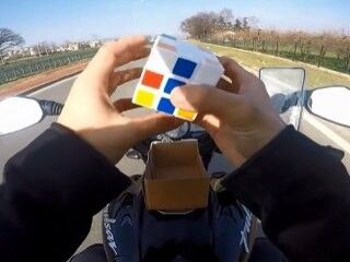 Motosiklet üzerinde rubik küp çözdü İZLE