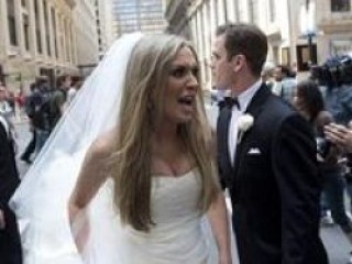 Ardından da kocası Tim ve etrafındakilere durmadan "Haydi burdan gidelim! Haydi gidelim!" diye bağırmaya başladı. Zorlukla sakinleştirilen gelin, apar topar protesto alanından uzaklaştırıldı.