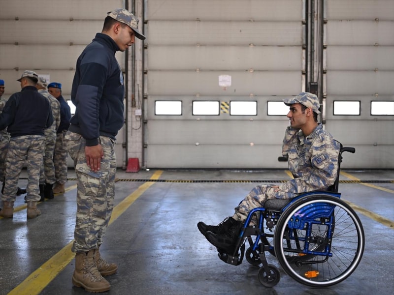 11'inci Hava Ulaştırma Ana Üs Komutanlığı'nda buluşan engelliler, bir günlüğüne asker oldu.