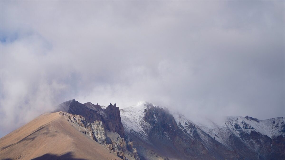 Dağın 3 bin 500 rakımdaki Hörgüçkaya mevkisi ile yüksek kesimler beyaza büründü.