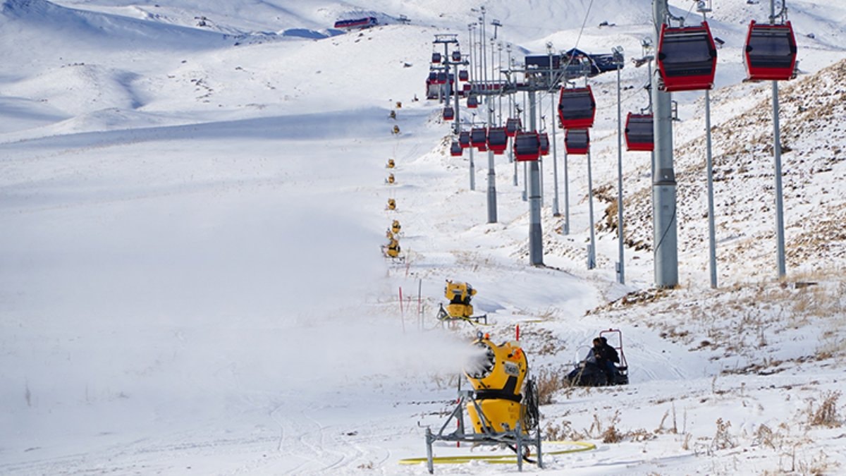 Türkiye’nin önemli kış turizm merkezlerinden Erciyes Kayak Merkezi’nde beklenen kar yağışı gecikince, 154 karlama makinesiyle saatte yaklaşık 9 bin metreküp suni kar üretilerek pistler yeni sezona hazırlanıyor.