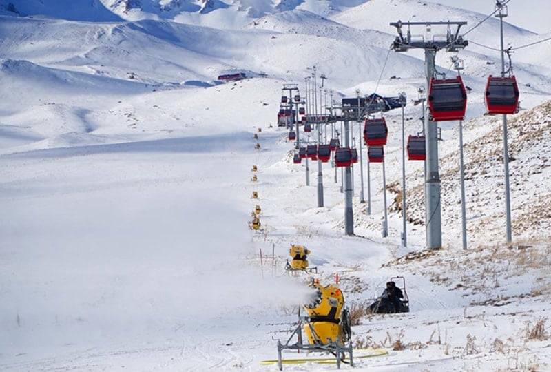Erciyes Kayak Merkezi Yapay Karlama Bölüm Şefi Murat Saylan, suni karlama ile sezon hazırlıklarının sürdüğünü belirtti. Pistlerin yaklaşık yüzde 60’ının suni karla hazır hale getirildiğini ifade eden Saylan, “154 makinemizle saatte yaklaşık 9 bin metreküp kar üretiyoruz. Hava sıcaklığı sıfırın altında 2,5 dereceye düştüğünde makineler devreye giriyor. Sıcaklık düştükçe üretim kapasitemiz artıyor” dedi.