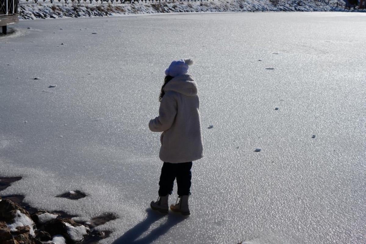 Buzla kaplanan göl ile çevresi, seyrine doyumsuz bir manzara ortaya çıkardı.