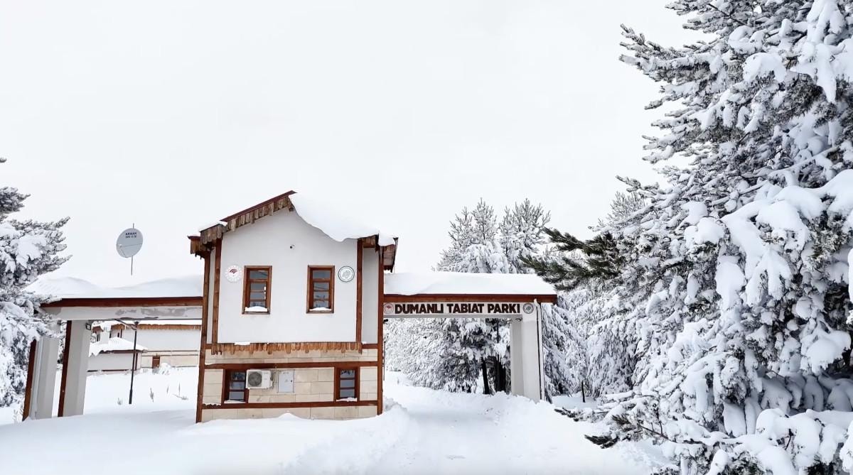 Erzincan'ın Refahiye ilçesine 7 kilometre uzaklıktaki Dumanlı Tabiat Parkı, kar yağışına teslim oldu.