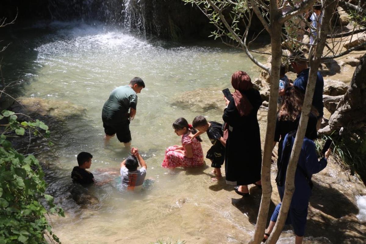 Hafta sonu tatilini fırsat bilen vatandaşlar, 40 metreden akan buz gibi suyu ve doğal güzelliğiyle öne çıkan Girlevik Şelalesi'ne akın etti.