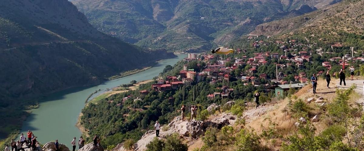 Erzincan'ın Kemaliye ilçesinde bu yıl 46’ncısı düzenlenen Kemaliye Uluslararası Kültür ve Doğa Sporları Şenlikleri, adrenalin dolu anlara sahne oldu. Erzincan Valiliği, Kemaliye Kaymakamlığı, Belediye Başkanlığı ve KEMAV iş birliğiyle düzenlenen etkinlikte, dünyaca ünlü base jump ve wingsuit sporcusu Cengiz Koçak’ın atlayışı nefesleri kesti.