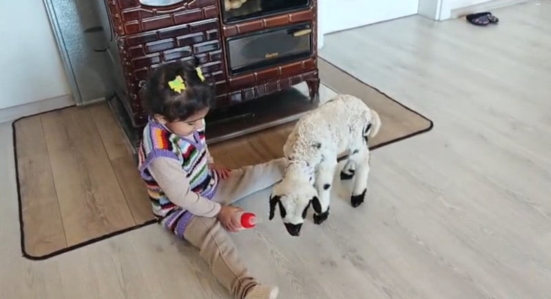 Erzincan’da 3 yaşındaki Ezo ile annesi tarafından reddedilen minik bir kuzu arasında kurulan bağ, görenlerin içini ısıttı.